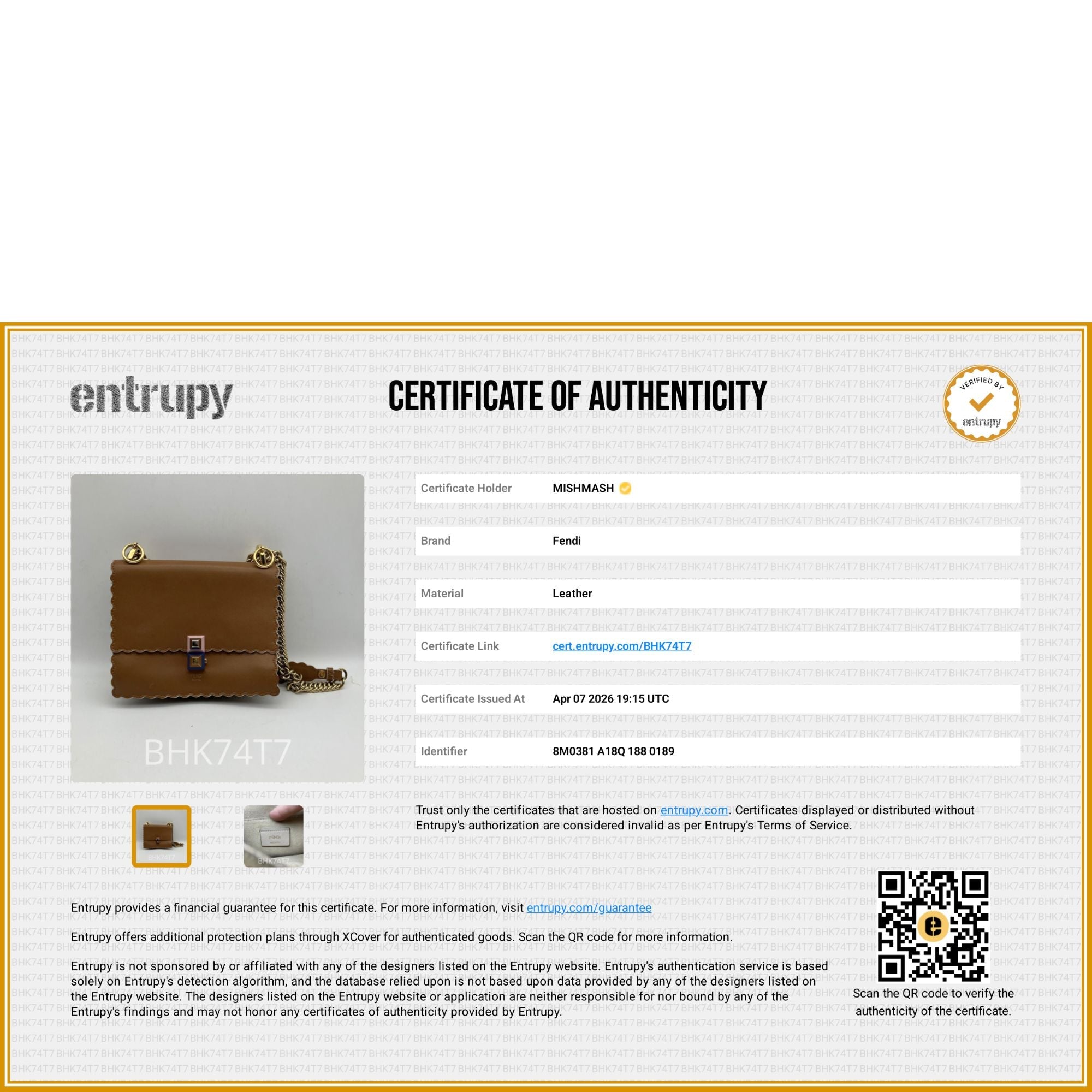 If a bag carries the Entrupy Badge, it has been authenticated by Entrupy, our global authentication partner.